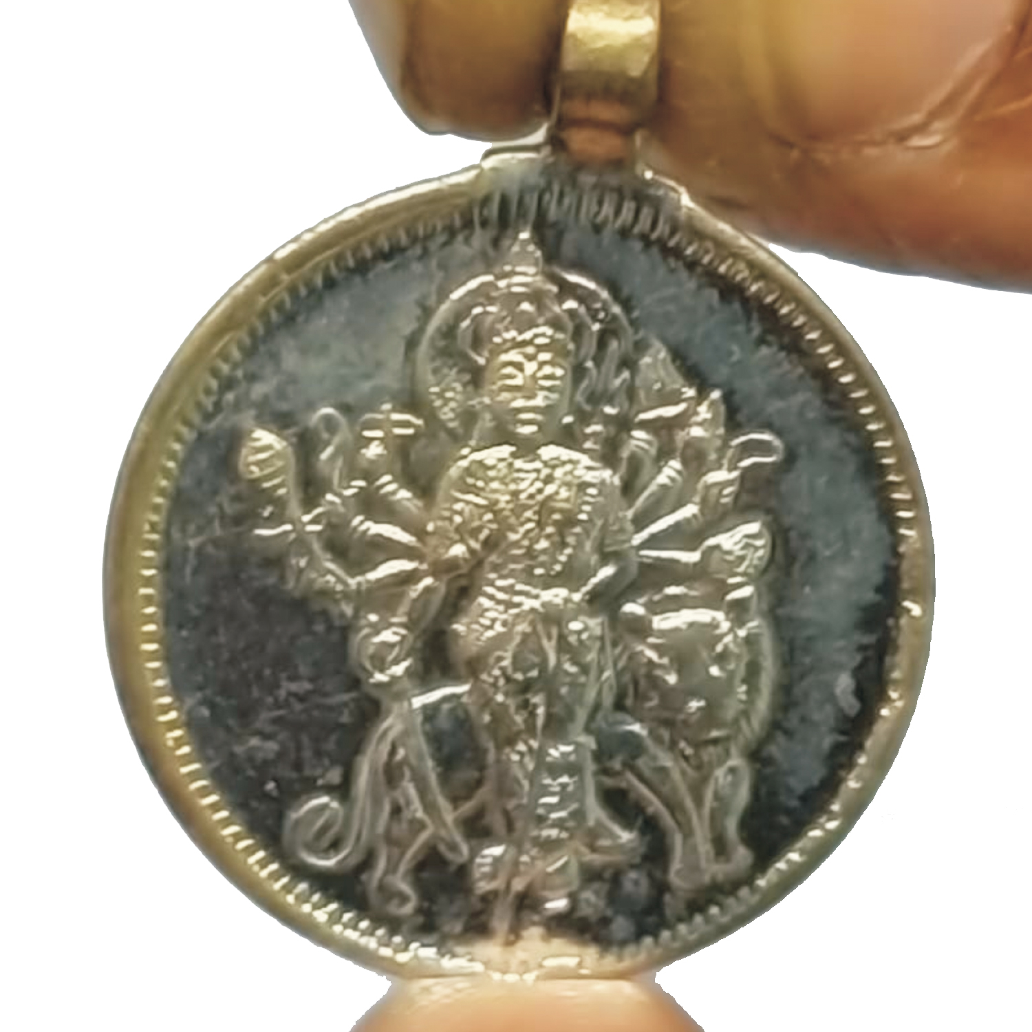 S9058-317 – Aadhyathmik Consecrated Durga Pendant Copper 1inch 5grams Silver Polish
